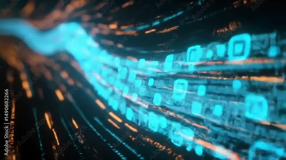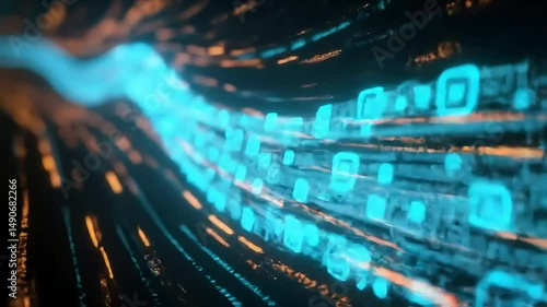 The watermark will not be included on Wall mural.: Digital information flows through the network and data servers behind in data center or internet ser