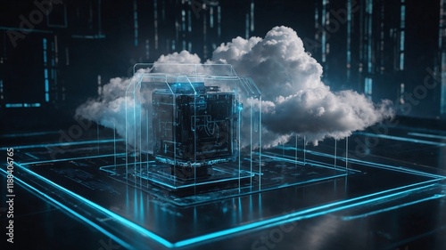 The watermark will not be included on Wall mural.: Digital informational technology web futuristic hologram with cloud, generative ai