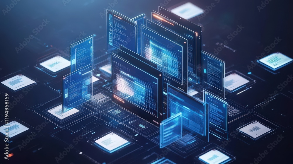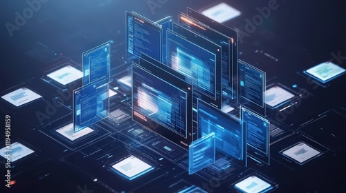 Wall mural digital interface for document management system with online file storage visualization and abstract - Wall murals Wall mural digital interface for document management system with online file storage visualization and abstract - Wall murals