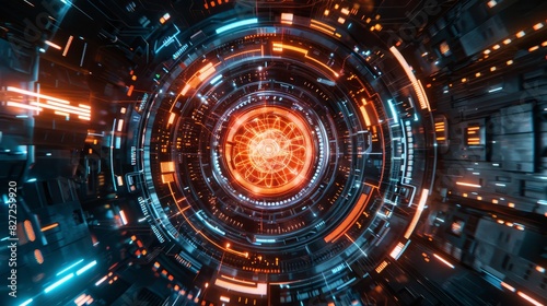 Wall mural digital interface of a hyperdrive core in operation, top view viewing operational data on a holograp