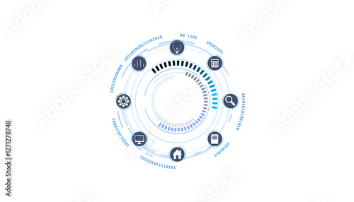 The watermark will not be included on Wall mural.: Digital interface with futuristic circular elements and tech icons on a white background - concept of