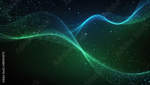 Wall mural digital light blue and light green particles wave and light abstract background with shining dots st