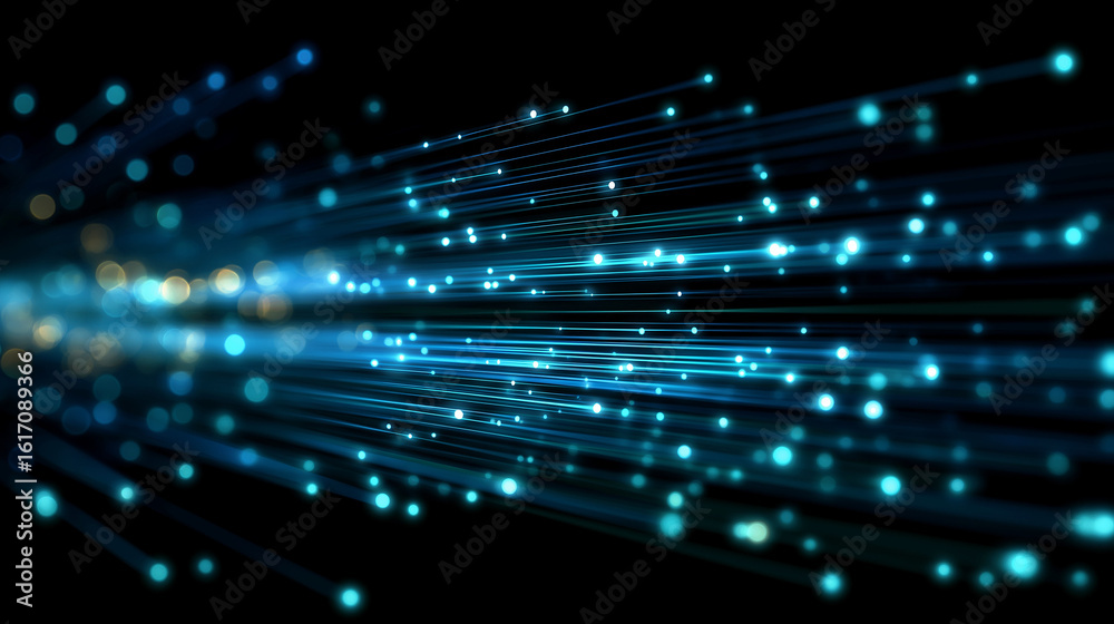 Wall mural digital light stream: abstract image of a flow of digital light particles and connecting lines creat - Wall murals Wall mural digital light stream: abstract image of a flow of digital light particles and connecting lines creat - Wall murals