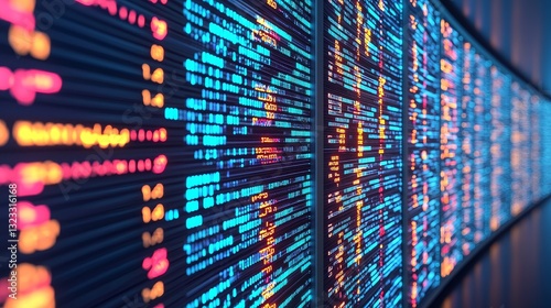 Wall mural : Digital literacy and technology analysis concept - abstract digital data stream with vivid colors and