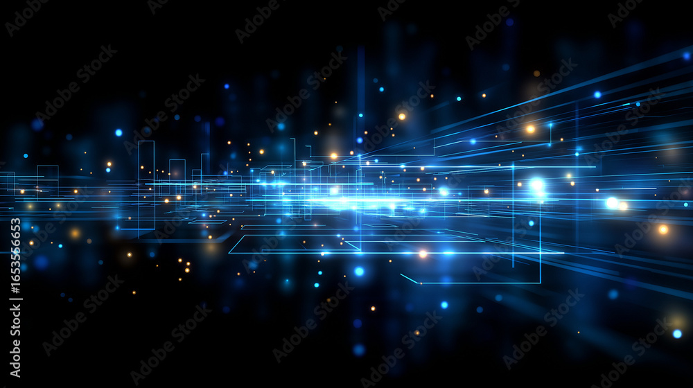 Wall mural : Digital luminescence: abstract digital landscape of glowing lights and lines, creating a futuristic