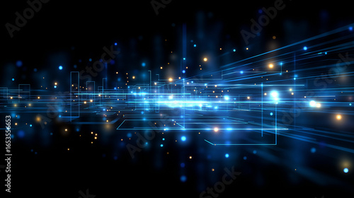 Wall mural digital luminescence: abstract digital landscape of glowing lights and lines, creating a futuristic