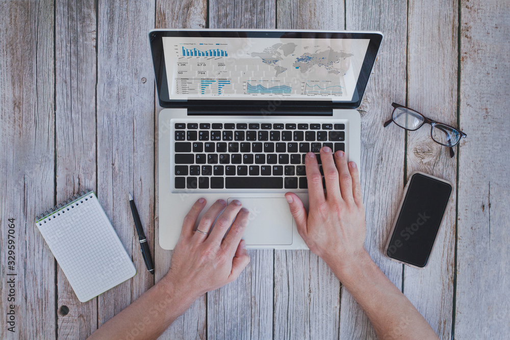 Wall mural digital marketing dashboard on the screen of laptop computer, website data analytics - Wall murals Wall mural digital marketing dashboard on the screen of laptop computer, website data analytics - Wall murals