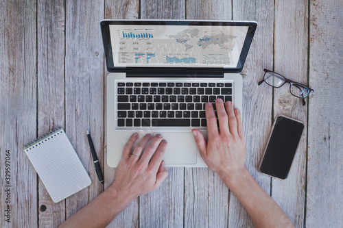 Wall mural digital marketing dashboard on the screen of laptop computer, website data analytics
