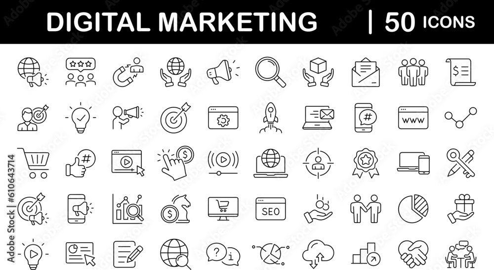 Wall mural : Digital marketing set of web icons in line style - marketing icons for web and mobile app - communicat