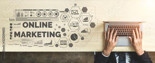 Wall mural digital marketing technology solution for online business concept - graphic interface showing analyt