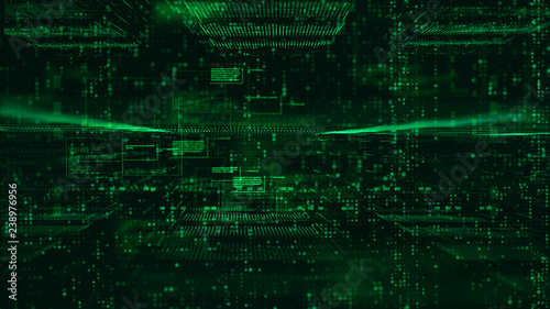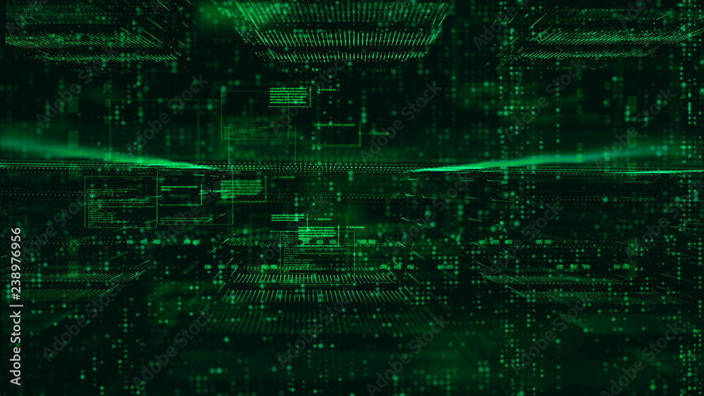 The watermark will not be included on Wall mural.: Digital matrix particles and grid abstract background