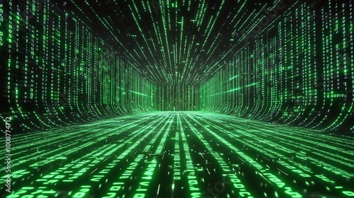 Wall mural digital matrix particles grid abstract cyber space environment background