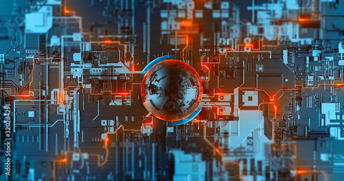 Wall mural digital nanotechnology, neural network, futuristic cryptocurrency cpu processor