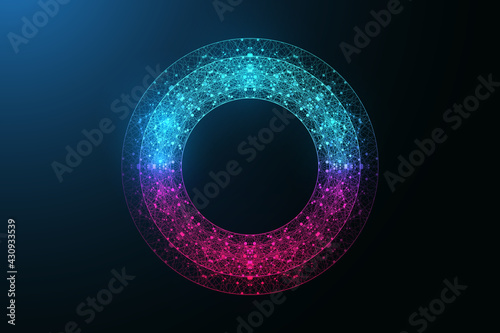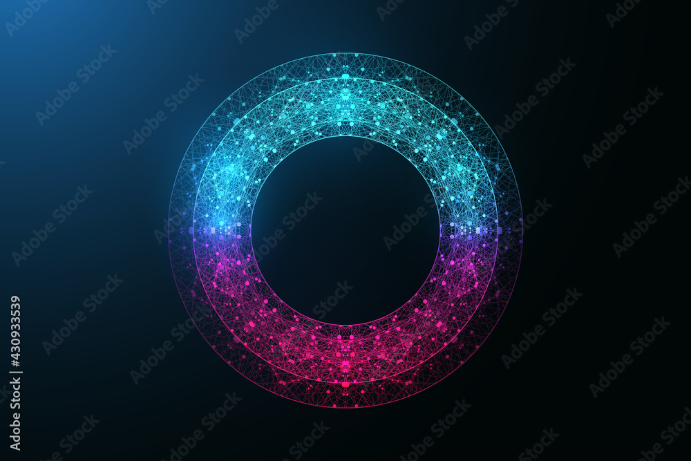The watermark will not be included on Wall mural.: Digital neon color circle with connecting dots and lines in abstract style - futuristic digital neon