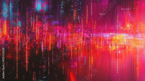 The watermark will not be included on Wall mural.: Digital neon matrix digital cyberspace data cyberpunk hologram abstract background wallpaper ai gene