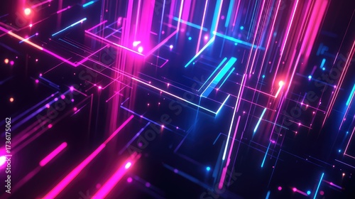 Wall mural : Digital network connecting data streams in abstract futuristic grid