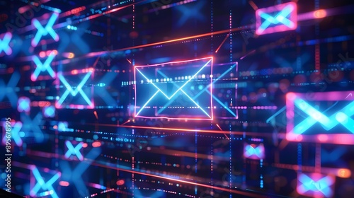 The watermark will not be included on Wall mural.: Digital network of email icons