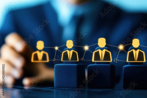 Wall mural : Digital networking concept with professional figures representing connection and collaboration in bu