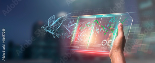Wall mural : Digital of virtual marketing in situations with business and finance networking on interface online