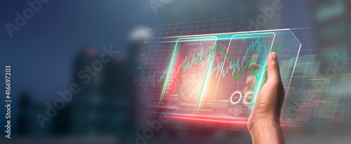 The watermark will not be included on Wall mural.: Digital of virtual marketing in situations with business and finance networking on interface online