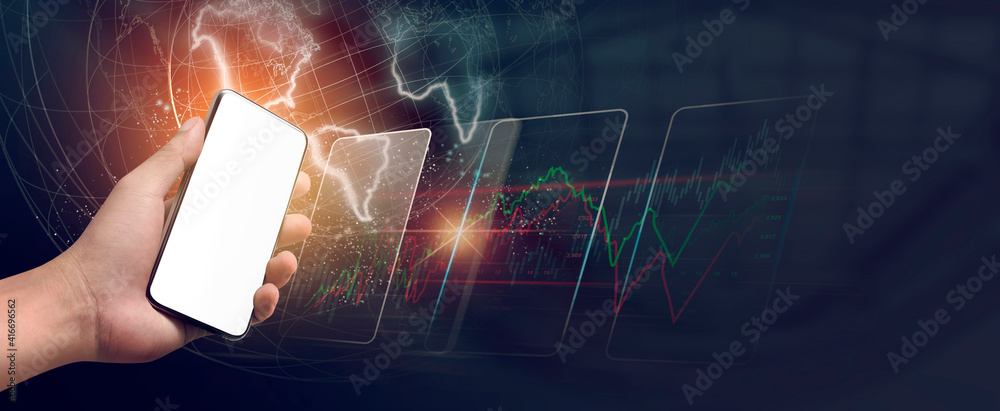Wall mural digital of virtual marketing in situations with business and finance networking on interface online