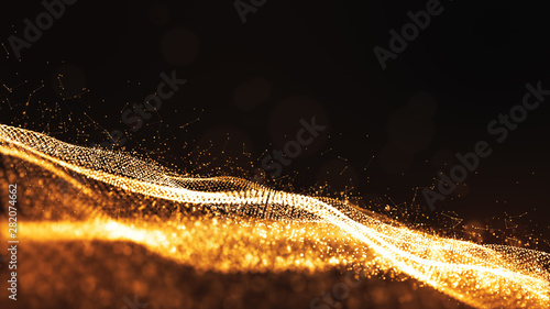 Wall mural digital particles gold color wave flow abstract background - Wall murals Wall mural digital particles gold color wave flow abstract background - Wall murals