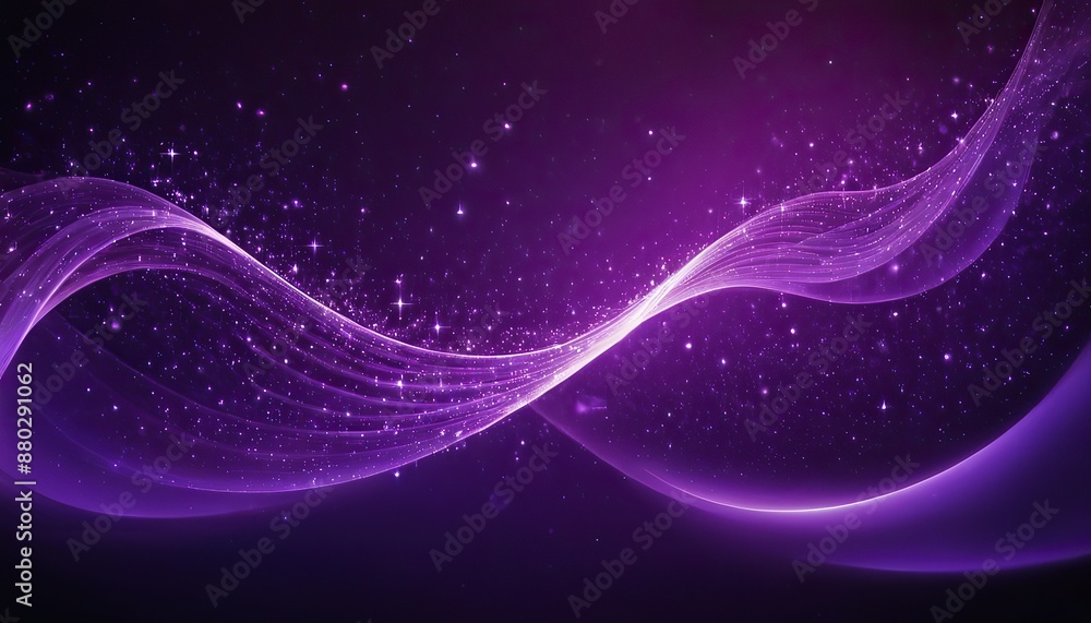 The watermark will not be included on Wall mural.: Digital purple particles wave and light abstract background with shining dots stars 1523