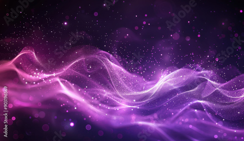 Wall mural digital purple particles wave and light abstract background with shining dots stars.