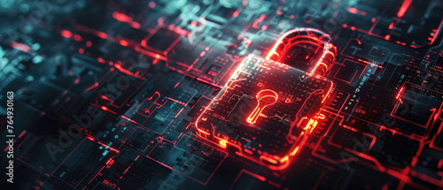 Wall mural digital red hot padlock in cyber space, abstract data dark background, secure computer information.  - Wall murals Wall mural digital red hot padlock in cyber space, abstract data dark background, secure computer information. - Wall murals