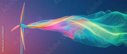 The watermark will not be included on Wall mural.: Digital rendering of a futuristic wind turbine with colorful energy flow in a vibrant atmosphere