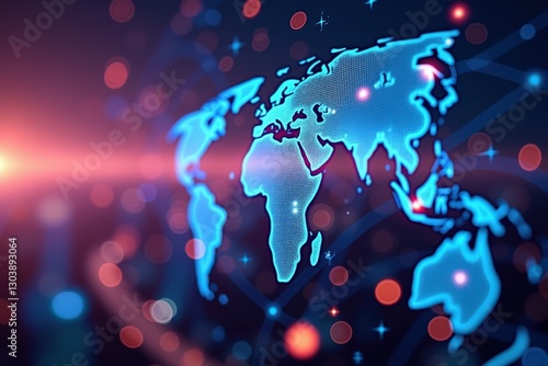 Wall mural digital representation of a world map illuminated by network connections, featuring a futuristic glo - Wall murals Wall mural digital representation of a world map illuminated by network connections, featuring a futuristic glo - Wall murals