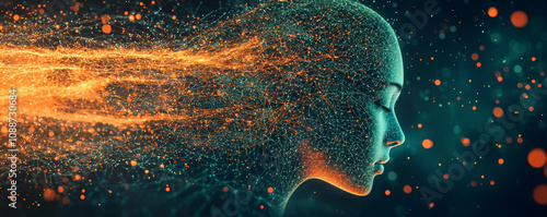The watermark will not be included on Wall mural.: Digital representation of woman profile with flowing data streams, symbolizing ai and technology imp