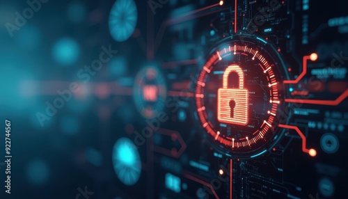 Wall mural digital security concept with a padlock icon on a futuristic interface. - Wall murals Wall mural digital security concept with a padlock icon on a futuristic interface. - Wall murals