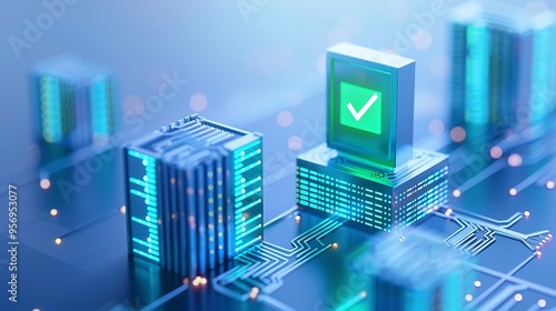 Wall mural digital security concept with abstract network, electronic check mark, and data blocks for technolog - Wall murals Wall mural digital security concept with abstract network, electronic check mark, and data blocks for technolog - Wall murals