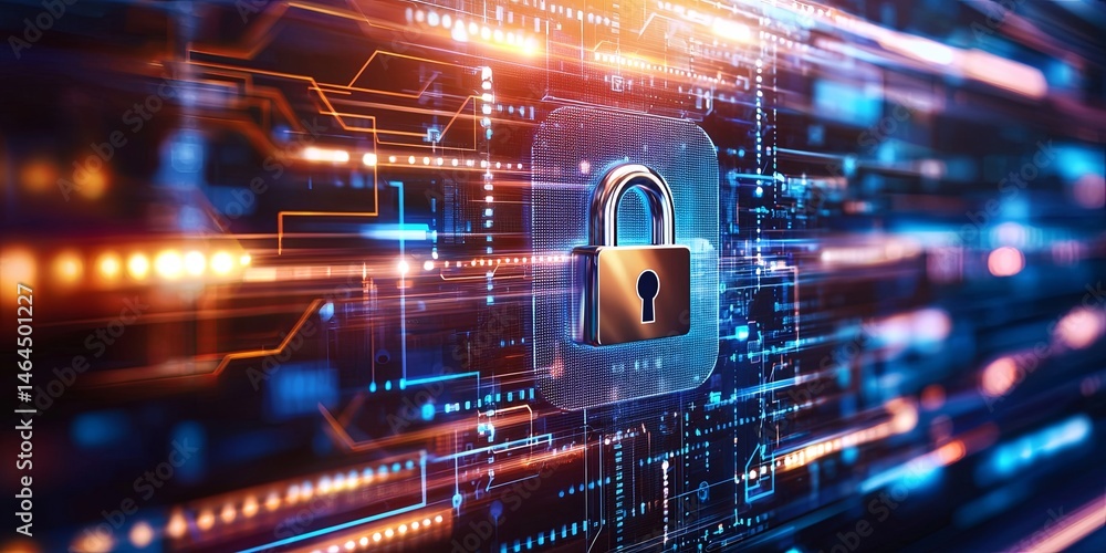 Wall mural : Digital security concept with lock symbol, data protection visualization, secure network technology,
