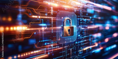The watermark will not be included on Wall mural.: Digital security concept with lock symbol, data protection visualization, secure network technology,