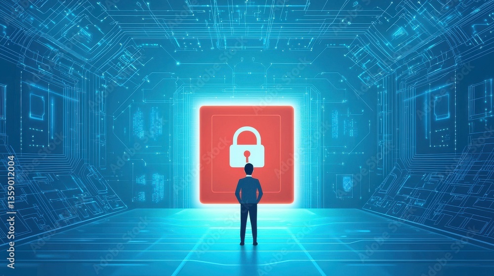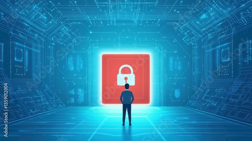 Wall mural : Digital security concept with lock symbol in futuristic environment