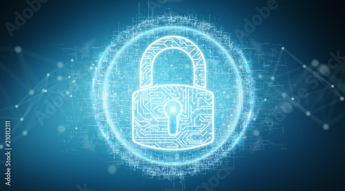 Wall mural digital security hologram with padlock 3d rendering - Wall murals Wall mural digital security hologram with padlock 3d rendering - Wall murals