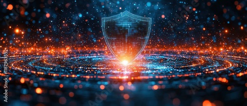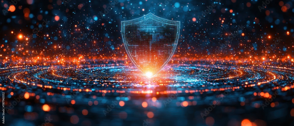 Wall mural digital shield with glowing particles and effects.