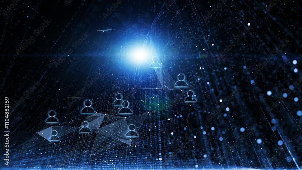 Wall mural digital shiny computer cyberspace network with people icons animation. - Wall murals Wall mural digital shiny computer cyberspace network with people icons animation. - Wall murals