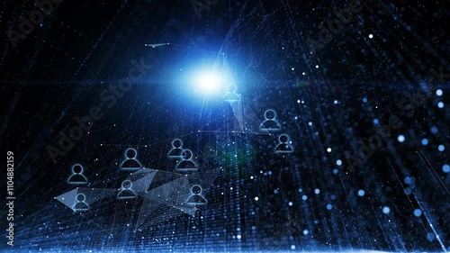 Wall mural digital shiny computer cyberspace network with people icons animation.
