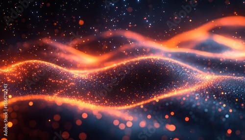 Wall mural : Digital space-inspired background with glowing particle trails and depth