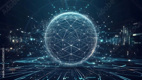 The watermark will not be included on Wall mural.: Digital sphere constructed with network connections and futuristic background