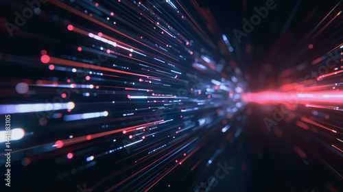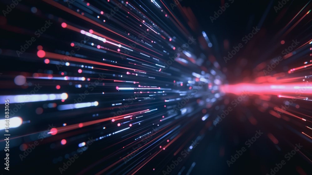 Wall mural digital stream: abstract representation of a high-speed data stream, visualized as streaks of red an