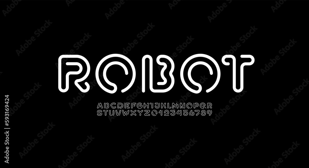 Wall mural digital style alphabet, font from white wire, letters and numbers made in linear style, vector illus - Wall murals Wall mural digital style alphabet, font from white wire, letters and numbers made in linear style, vector illus - Wall murals