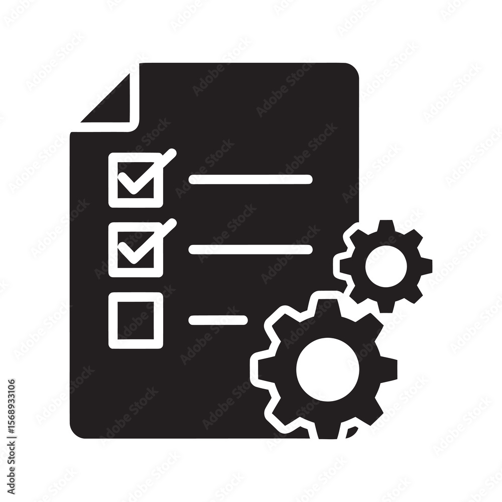 Wall mural : Digital task management solid glyph icon with checklist on computer screen and gear for project plan