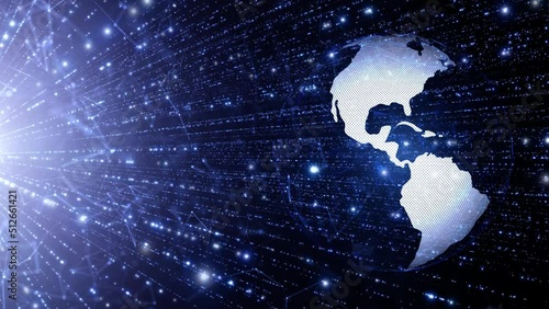 Wall mural digital tech earth globe cyberspace with lines and dots.