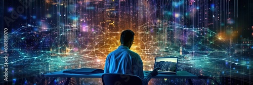 Wall mural : Digital technology, internet network connection, big data, digital marketing iot internet of things -