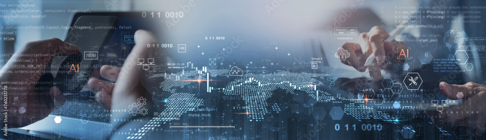 Wall mural digital technology, technical support customer service concept, cloud computing. software engineer t - Wall murals Wall mural digital technology, technical support customer service concept, cloud computing. software engineer t - Wall murals