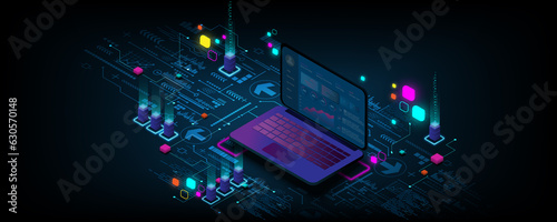 The watermark will not be included on Wall mural.: Digital technology abstract background image business digital analytics digital server business grow